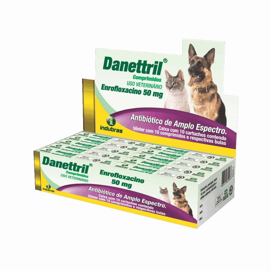 A dosagem do Enrofloxacino deve ser determinada por um médico-veterinário de acordo com o peso e a gravidade da infecção. A dose recomendada do Danettril® é de 5 mg/kg, o que equivale a 1 comprimido para cada 10 kg de peso corporal. A duração do tratamento varia de acordo com a resposta clínica do animal e o tipo de infecção, com isso deve ser conforme prescrição de um médico veterinário.