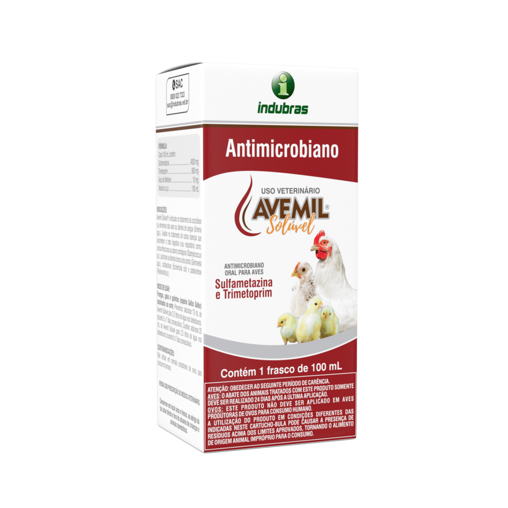 Um dos remédios mais indicados é o Avemil Solúvel da Indubras, produzido com excelência e inovação nas apresentações de 20 mL com frasco conta-gotas e 100 mL. Podendo apresentar excelentes resultados no trato digestivo, tratando a coccidiose.