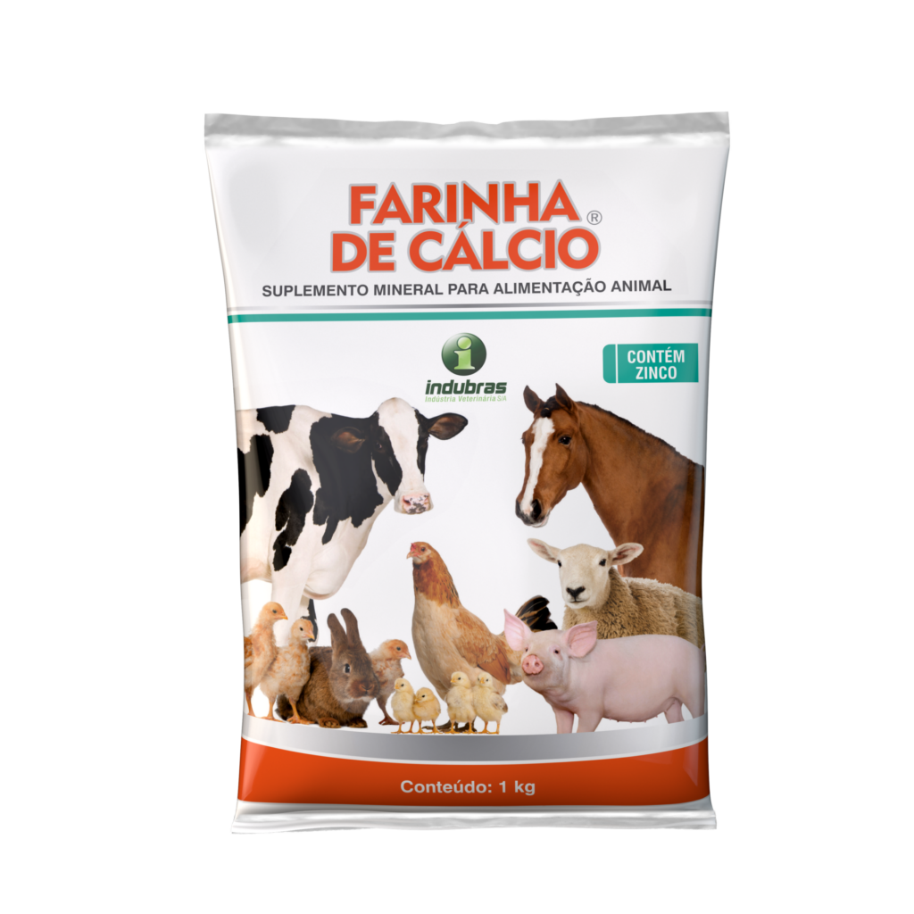 A Farinha de Cálcio tem por objetivo fornecer aos animais cálcio, fósforo, enxofre, iodo, magnésio e potássio.