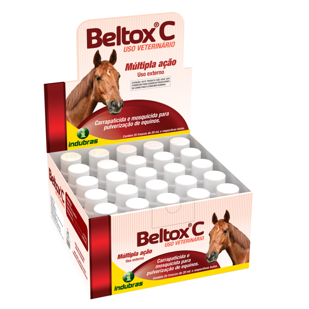 Como exemplo a pulverização com Beltox C, carrapaticida indicado no tratamento e infestação por larvas e ninfas do Amblyomma Sculptum, Dermacentor nitens e Rhipicephalus microplus.