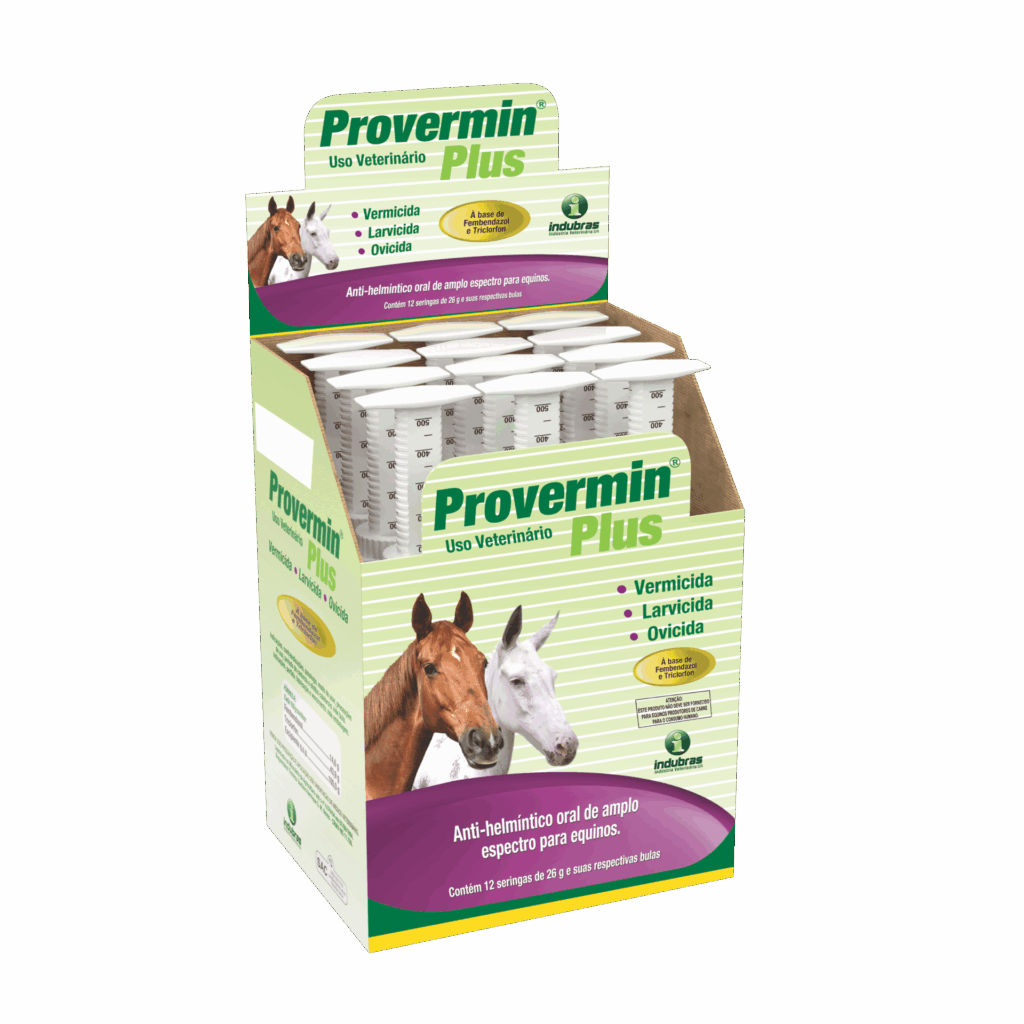 O Provermin Plus possui um ativo adicional “Triclorfon” que potencializa a ação no combate as verminoses .