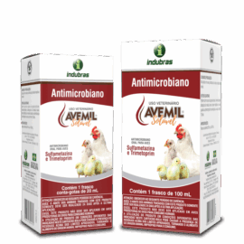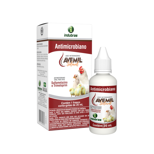 Avemil Solúvel é indicado no tratamento da coccidiose ou eimeriose das aves ou diarreia de sangue (Eimeria spp.). Auxiliar no tratamento de outras doenças que acometem o trato digestivo e/ou respiratório como: coriza infecciosa ou catarro contagioso (Staphylococcus sp.), pulorose ou diarreia branca dos pintos (Salmonella spp.), colibacilose (Escherichia coli) e pasteurelose (Pasteurella sp.).