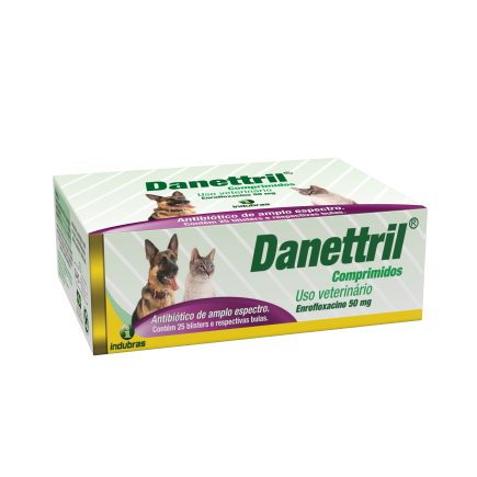 A dose recomendada é de 5 mg/kg de peso vivo de enrofloxacino, o que equivale a 1 comprimido de Danettril para cada 10 kg de peso do animal.