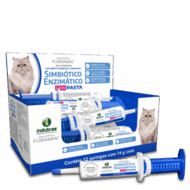 Simbiótico Enzimático, com prebiótico, probiótico, enzimas e aminoácidos, que auxiliam no equilíbrio da microbiota intestinal de gatos de todas as idades, trazendo benefícios para os animais. Uso exclusivo na alimentação animal.
