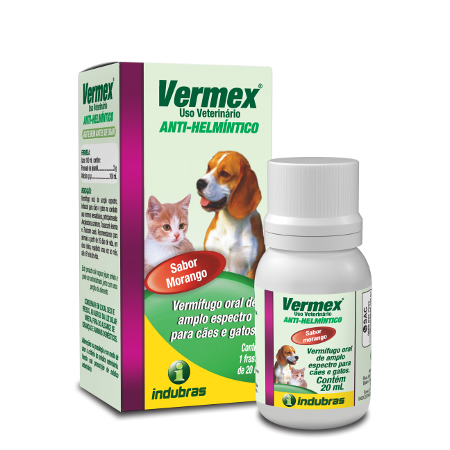 Vermífugo oral, de amplo espectro, indicado para cães e gatos no combate aos vermes nematódeos, principalmente: Ancylostoma caninum, Toxascaris leonina e Toxocara canis. Recomendamos para animais a partir de 15 dias de vida, em dose única, repetindo uma vez ao mês, até o 6º mês de vida.