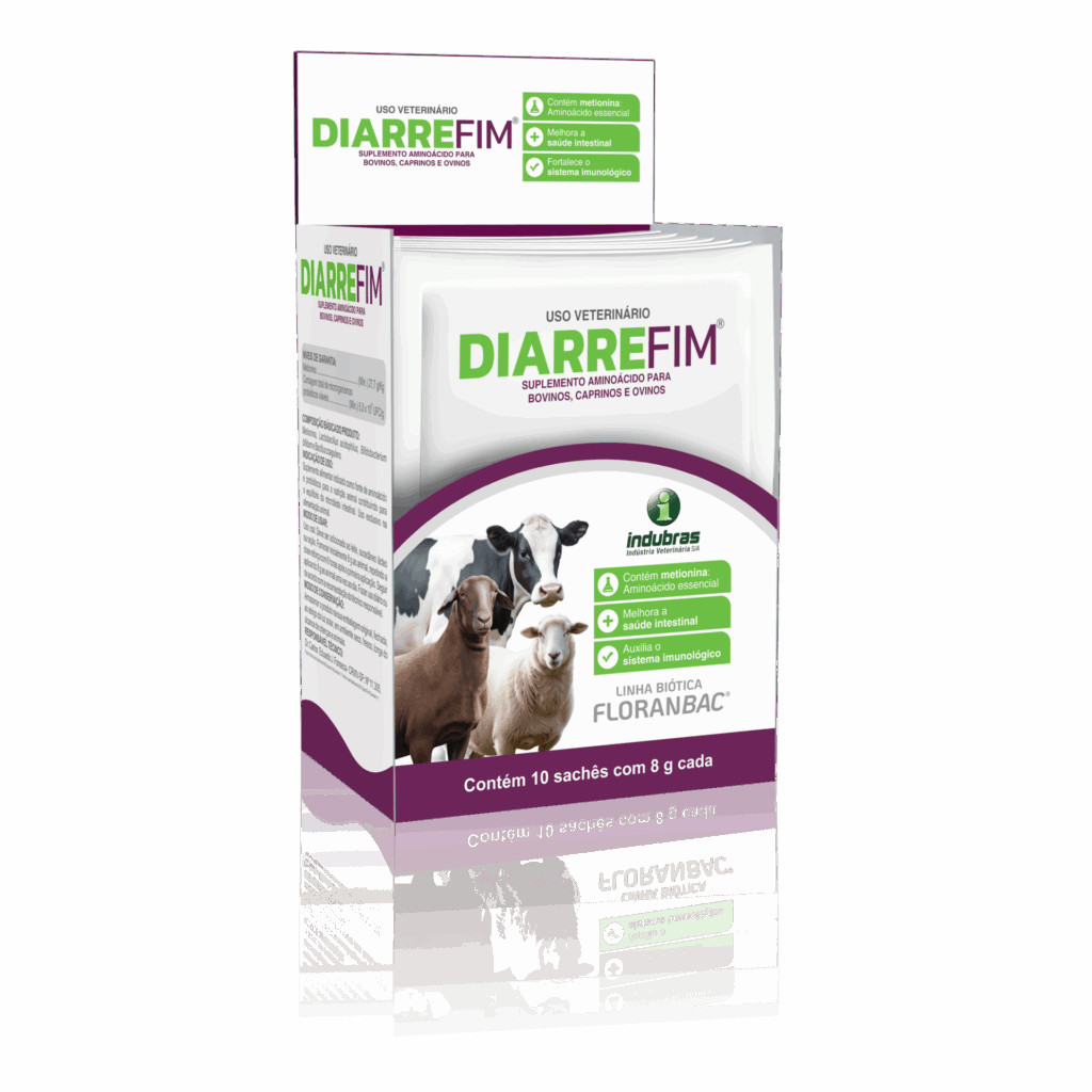 Diarrefim um suplemento da linha biótica Floranbac® para todos os momentos e todas as fases da vida. Com formulação exclusiva à base de probióticos viáveis e metionina. o Diarrefim foi pensado exclusivamente para bovinos, ovinos e caprinos, contribuindo para o equilíbrio da microbiota intestinal e fortalecendo o organismo de forma natural.
